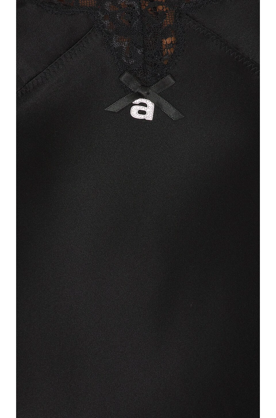 Self: 100% silk.Trim: 89% polyamide, 11% elastane. Made in China. Dry clean only. Unlined. Hidden back zipper closure. Adjustable shoulder straps. Bow accent with charm at bust.Lightweight silk fabric with lace trim and crystal embellished ‘a’ charm. Revolve Style No. AWAR-WD5. Manufacturer Style No. 4WC2226165.