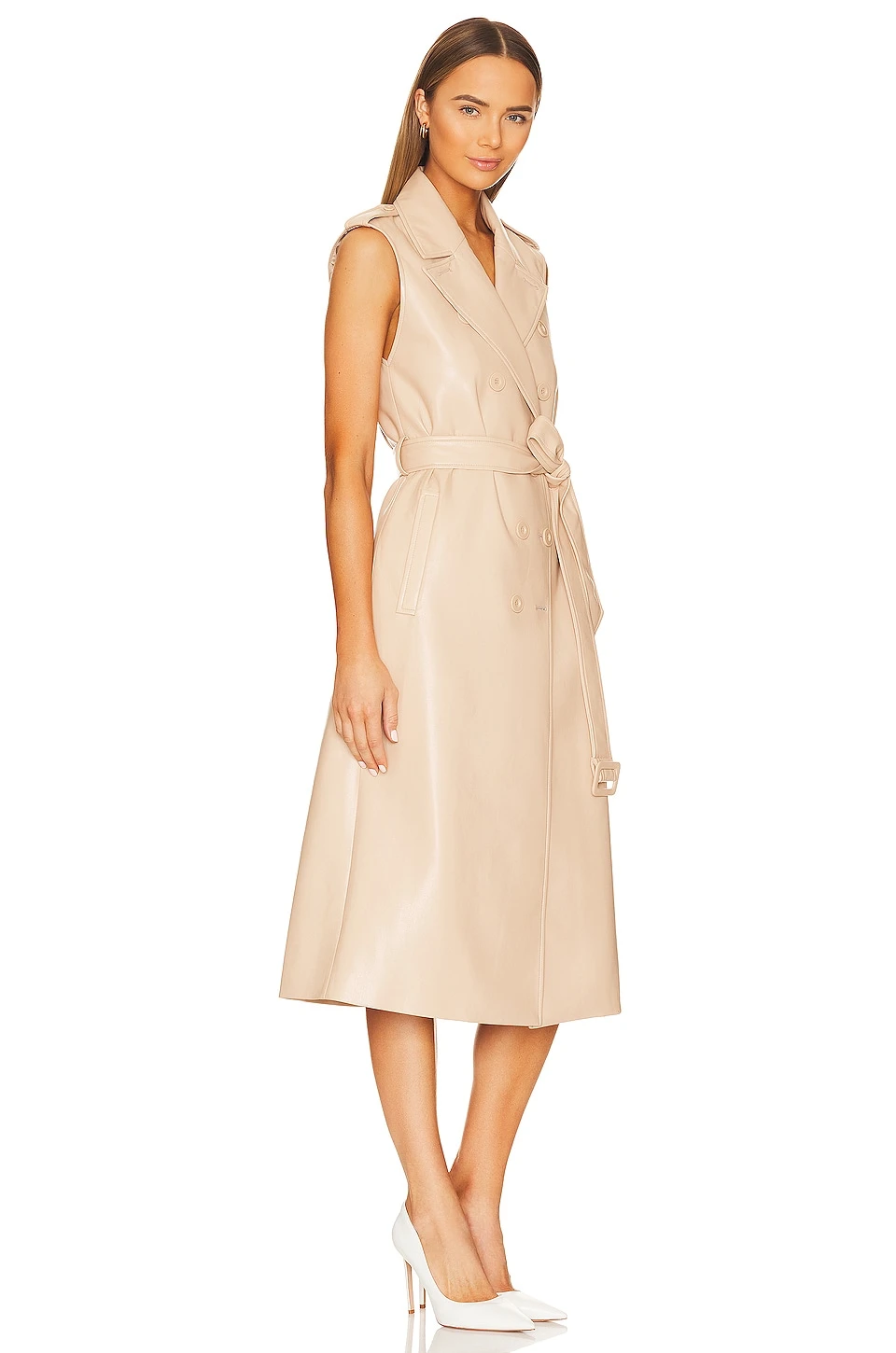 Alice + Olivia Conan Faux Leather Long Vest Belted Dress Almond
