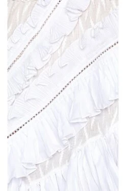- Lightweight fabric with ruffle, lattice and pleated trim