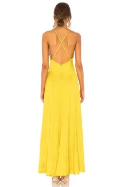 - Be a bombshell at your next evening event in the Lovers + Friends Bermuda Dress. Rendered in a gorgeous shade of soft chartreuse, this satin gown features a high-cut leg slit that adds effortless movement.