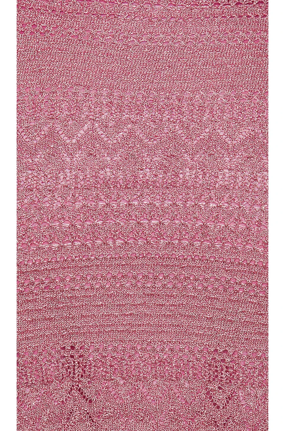 Waist and back cut-outs - Stretch knit fabric with ruffle trim and metallic threading throughout